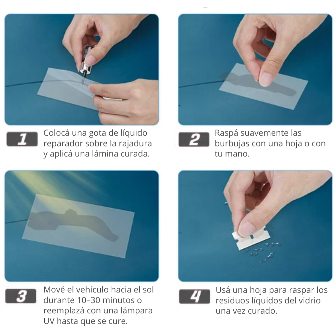 El Kit Repara Cristales rellena y sella astillas, ojos de buey, telarañas, estrellas y líneas finas para devolverle claridad al vidrio. Ahorra dinero y evitá el cambio completo del parabrisas con un sistema DIY rápido y efectivo.