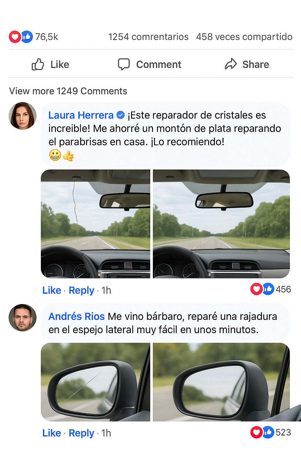Resultados visibles desde el primer uso del Kit Repara Cristales.
